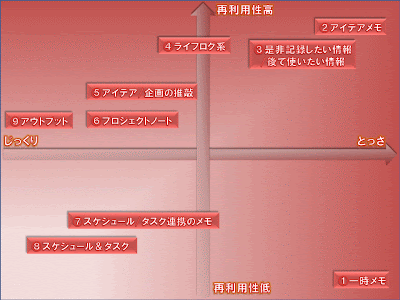 すでに前でも記録媒体について言及しているが、改めてどこに何を書くかを整理してみたい。シチュエーション別や記録媒体間の関係についてざっと書いてみると