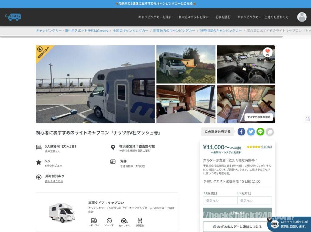 こちらで紹介しているキャンピングカーをCarStayで貸出しています。